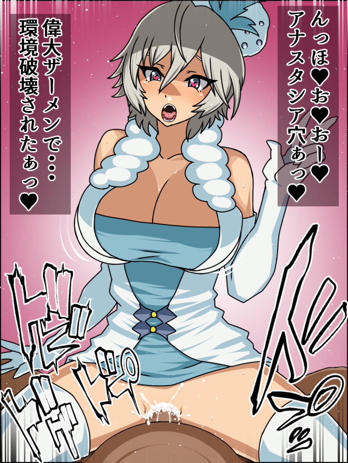 M字開脚で縛られて吊られているアナスタシアが犯される絵