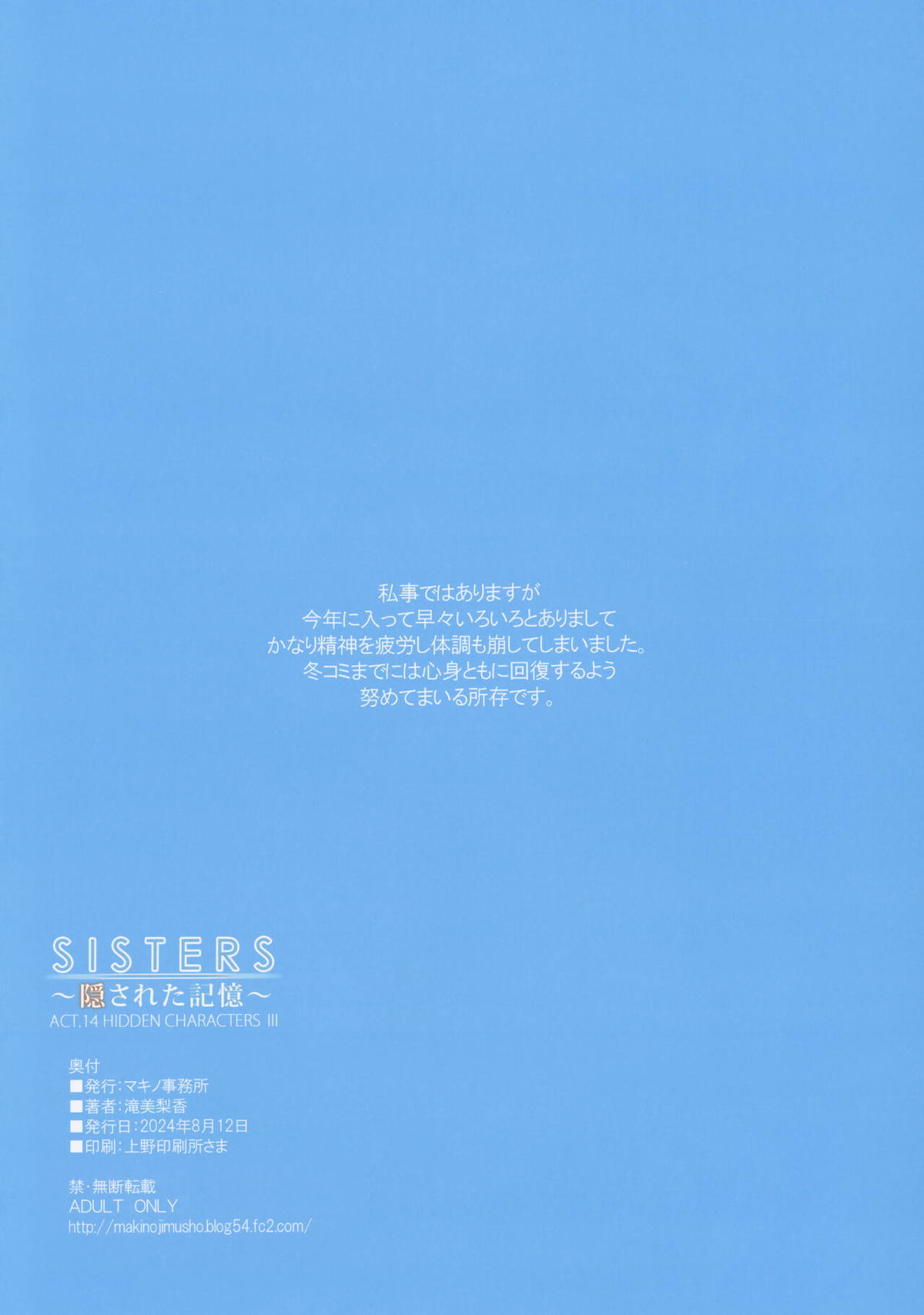 SISTERS ~隠された記憶~ 会場限定本 – 下描きまでしたけど使わなかったモノたち