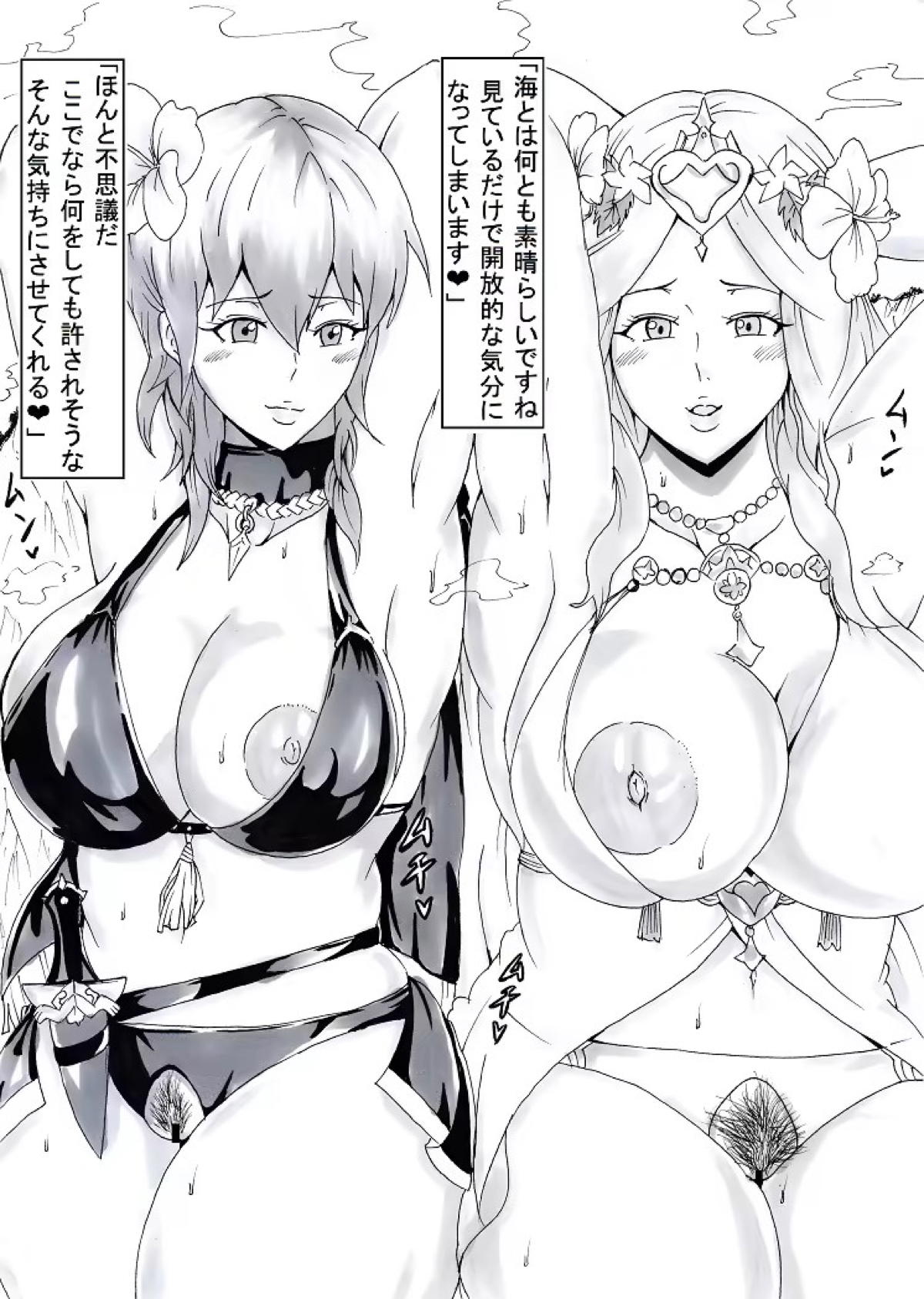 水着ベレス&レアがザー◯ンまみれになりながらハメまくる♡
